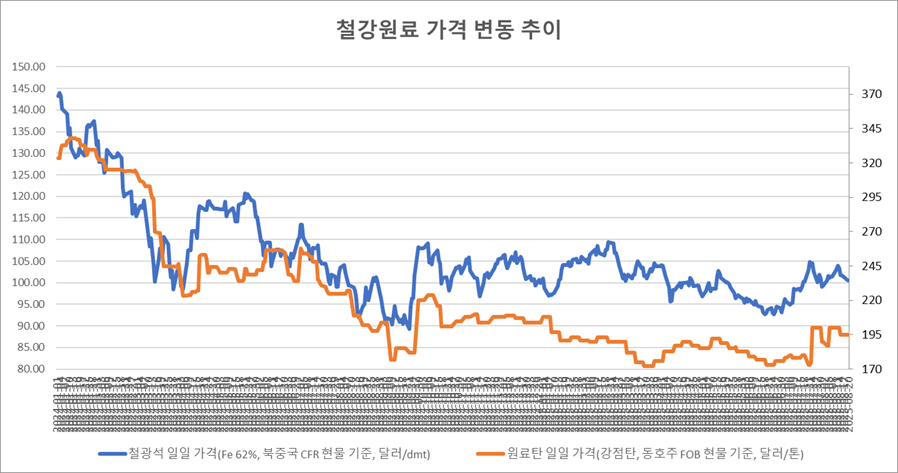 [표] 일일 철강 원료 가격 동향(8월 20일)
