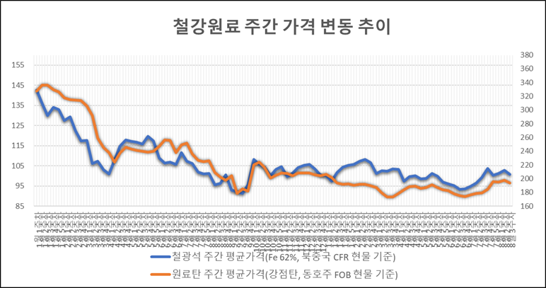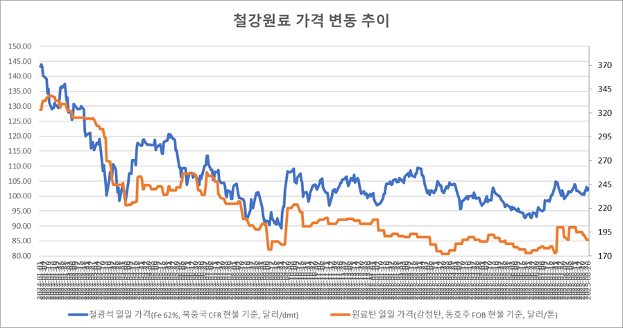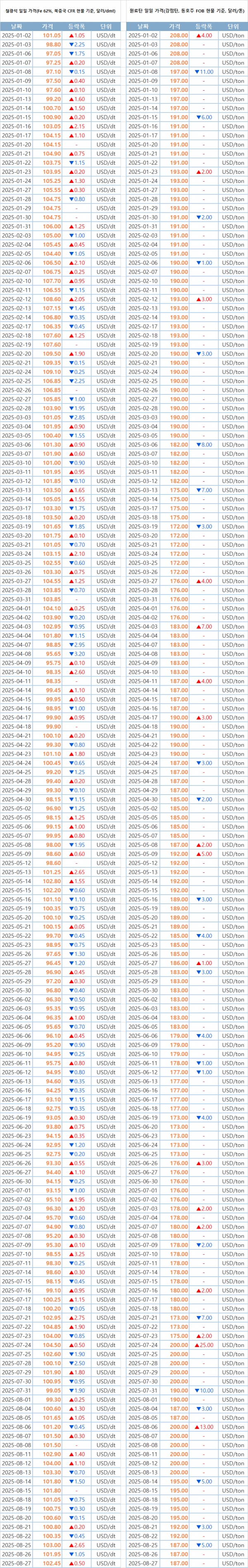 [표] 일일 철강 원료 가격 동향(8월 27일)