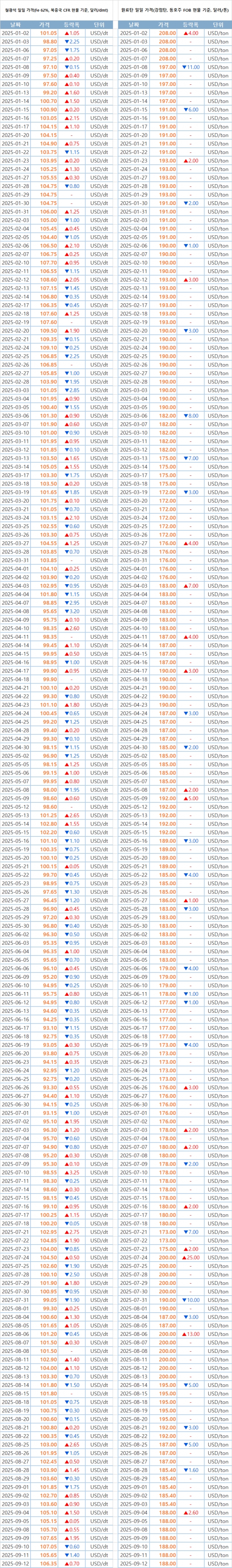 키워드 #철광석 #원료탄 이사무엘 기자 smlee@snmnews.com 다른 기사 보기 관련기사 日 중부철원 입찰, 9월 신다찌바라 FAS 4만4,810엔 [단독] 반덤핑관세 비켜간 ‘중국산 내마모·고장력 후판’…특수강종은 예외 KTR, 수소차 연료전지 시험인증 기반시설 구축 중기부, ‘납품대금 연동약정 사례집’ 발간 [단독] “이란산 슬래브, 중국 후판에 스며들다”…제3국 경유한 은밀한 경로 (후판 속 숨은 제재 폭탄①) 포모사, 호아팟 이어 HRC 내수價 인상 ‘韓 컬러강판 최대 시장’ 멕시코 관세 인상 움직임 중국 열연강판價, 반등했지만 불안정…수출 의존만 심화 산업위기지역 지정·민간 상생책 맞물려…포항 철강산업 재도약 모색 보합장에 갇힌 쇳물가·제품가…‘가격 정상화’ 압박 커진다 [분석] 국내 소비 3% 줄 때, 中 후판 수입 41% 폭증…국내 가격·이익 뿌리째 흔들렸다 저작권자 © 철강금속신문 무단전재 및 재배포 금지