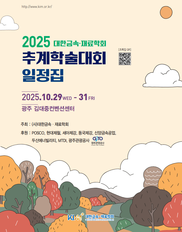 한편, 2025 대한금속·재료학회 추계학술대회는 같은 장소(김대중컨벤션센터)에서 10월 29일부터 31일까지 사흘간 진행된다. 올해 추계학술대회는 구두발표와 포스터발표, 학회 총회, 역대 학회 회장초청 만찬, 학회 시상식 등이 병행될 예정이다.
