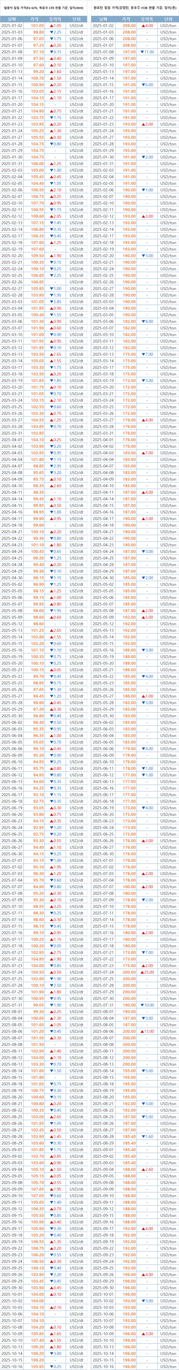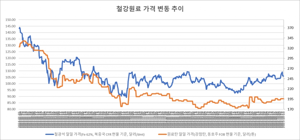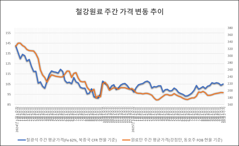[표] 일일 철강 원료 가격 동향(10월 16일)