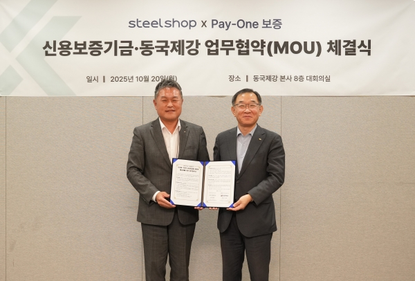 동국제강은 자사몰 스틸샵(Steelshop)이 20일 서울 수하동 본사 페럼타워에서 신용보증기금과 '디지털 기반의 공급망 금융 생태계 활성화를 위한 업무협약'을 체결했다고 밝혔다.
