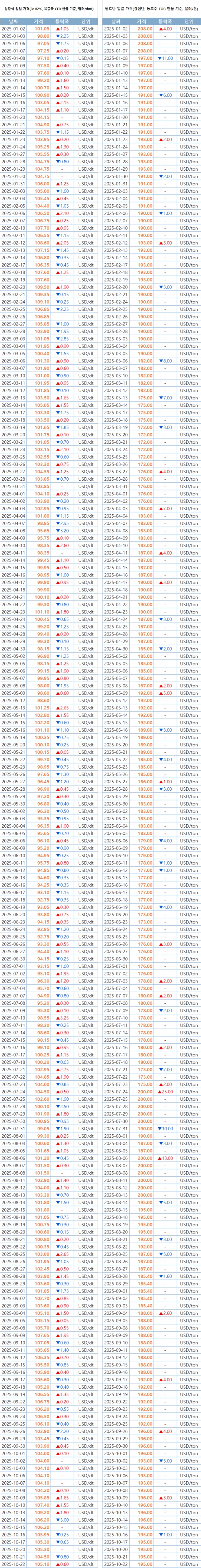 [표] 일일 철강 원료 가격 동향(10월 22일)