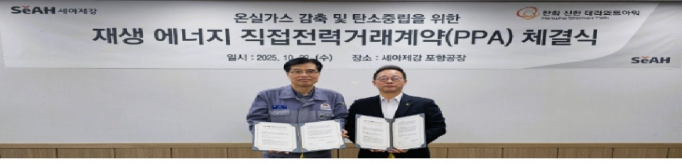 세아제강, 한화신한테라와트와 직접 PPA 계약…RE100 달성 '투트랙 전략' 가속”