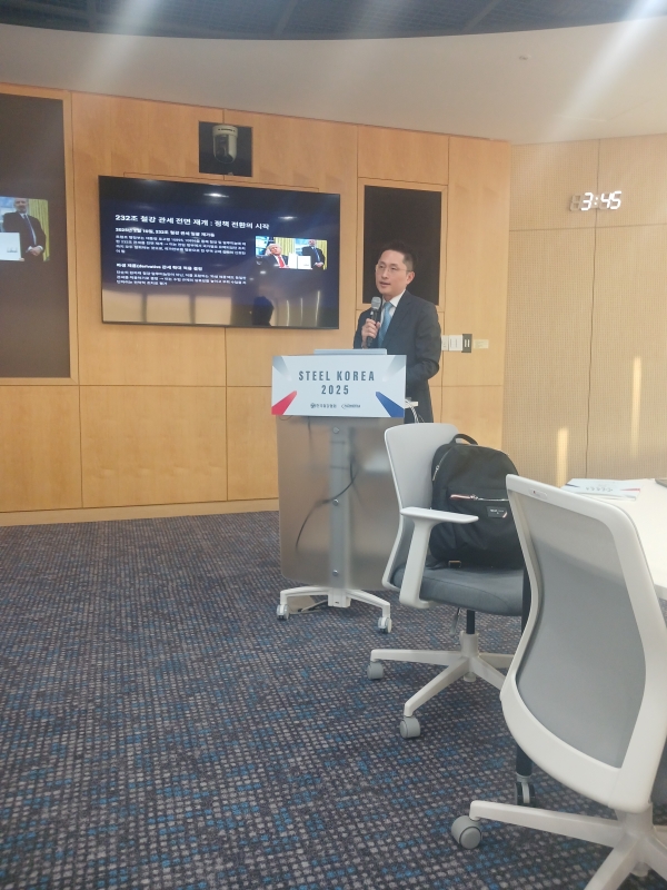 4일 서울시 강남구 포스코센터에서 열린 ‘스틸코리아 2025 글로벌 전환기 철강산업의 대응방안’에서 발표를 맡은 박정현 광장 변호사는 미국과 유럽연합(EU)의 철강 수입 규제 정책 동향을 알리며 한국철강업계에 이 같은 제언을 내놨다.