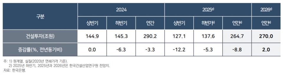건설투자는 올해 '-8.8%'→내년 '+2.0%'