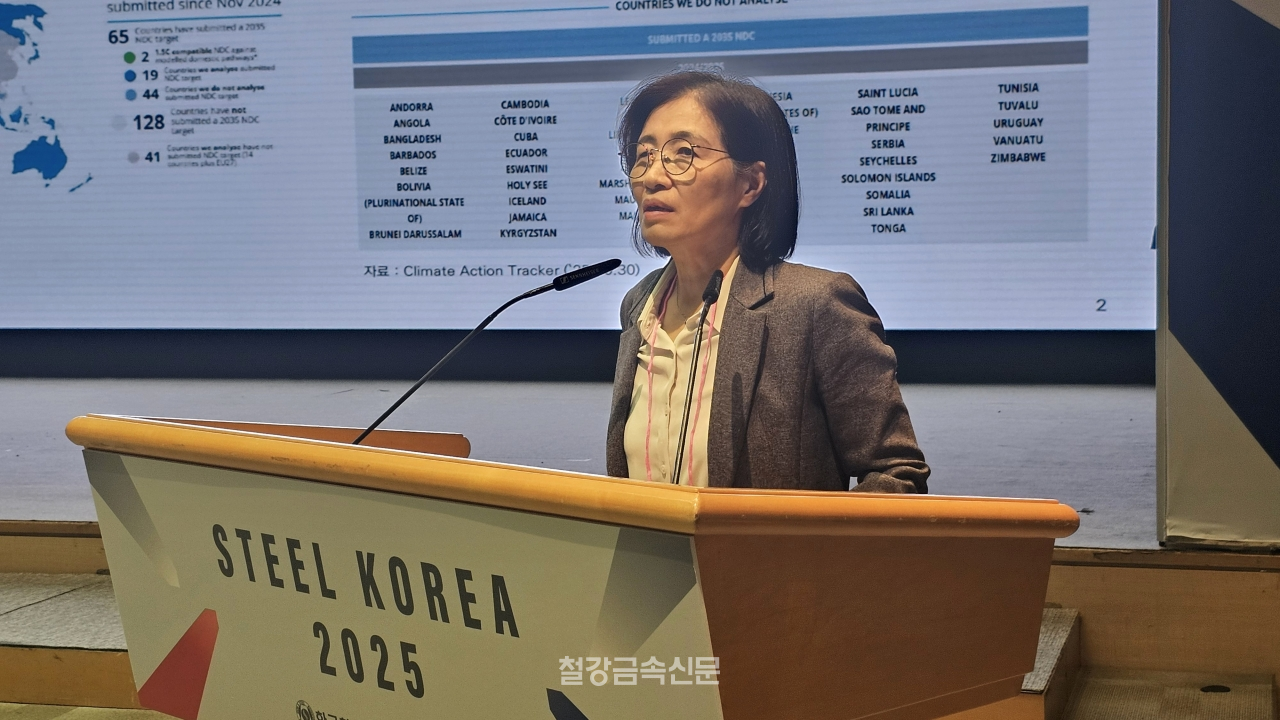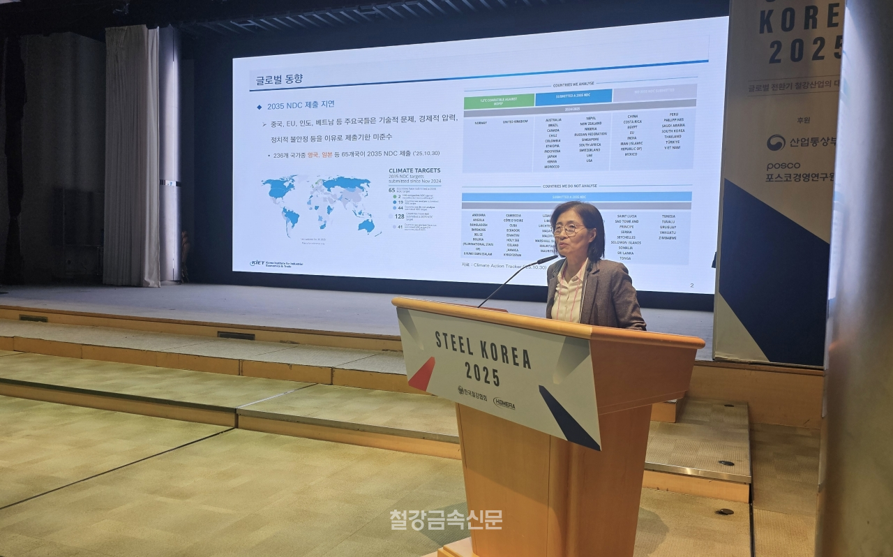 5일 스틸코리아(STEEL KOREA) 2025 2일차 기후 파트 세미나에선 산업연구원 정은미 선임연구위원이 ‘산업부문 2035 NDC 주요 과제 및 지원 방안’에 대해 발표했다.