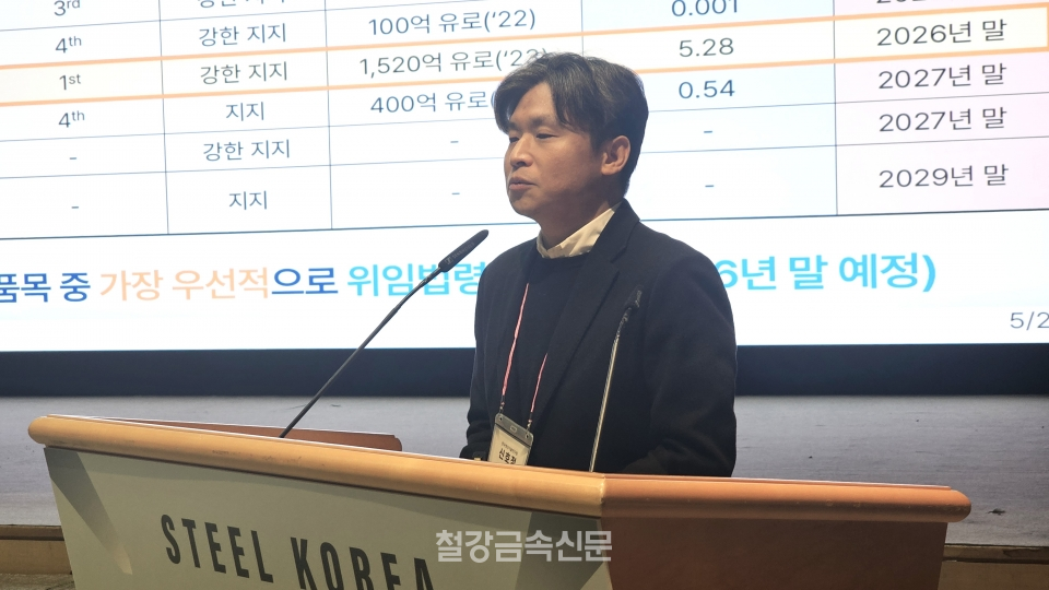 신호정 실장은 “철강 품목 중에서도 열간압연코일과 냉간압연코일(용융도금강판 포함), 선재, 전기강판, 스테인리스 등 5개 세부품목으로 JRC 연구가 이뤄지고 있는 것으로 파악되면서 규제 적용에서도 이들 품목에 대한 연구 결과가 사용될 것으로 보인다”며 “특히 한국은 중국과 튀르키예, 대만 등과 함께 5개 후보 세부품목에서 EU에 공급하는 물량이 많은 국가로 꼽히고 있어 주력 수출품에 대한 대비가 필요하다”고 설명했다.