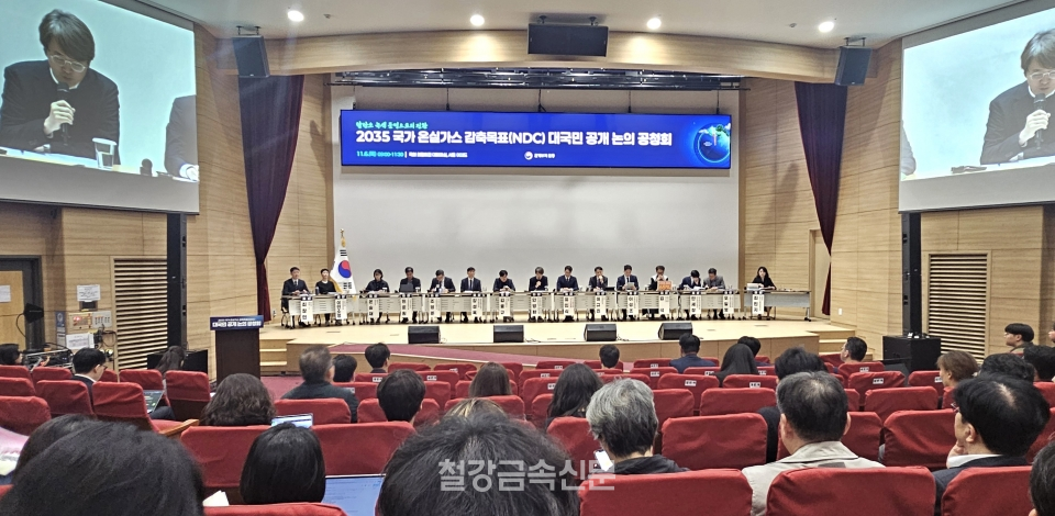 철강업계에선 한국철강협회 강성욱 전무가 패널로 참석하여 “철강산업이 탄소 다(多)배출, 에너지 다소비업종이기도 하지만 건설, 자동차, 조선, 방산 등 여러 2차 산업 발전의 필수 산업이자 보호 무역이 강화되는 작금의 상황에서 경제 안보의 건강이자 주축이기 때문이다”라면서 “철강 업계의 감축 목표와 관련하여 NDC 기술작업반에서 검토한 가장 높은 감축 목표안인 48%안이 제출됐었는데 오늘 최소 목표가 50%로 제시된 점에 주목하지 않을 수 없다. 기존 48%안도 산업계의 감축 여력을 뛰어넘는 수준이었는데 더 높은 감축목표 설정으로 인위적으로 철강 생산량을 줄이는 상황이 발생될 것으로 예상된다”고 밝혔다.