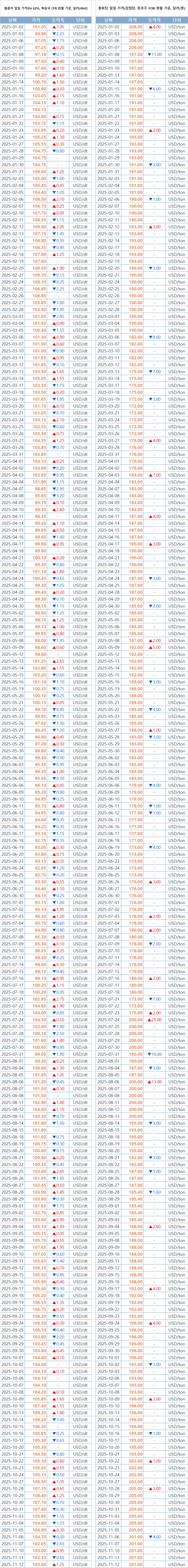 [표] 일일 철강 원료 가격 동향(11월 12일)