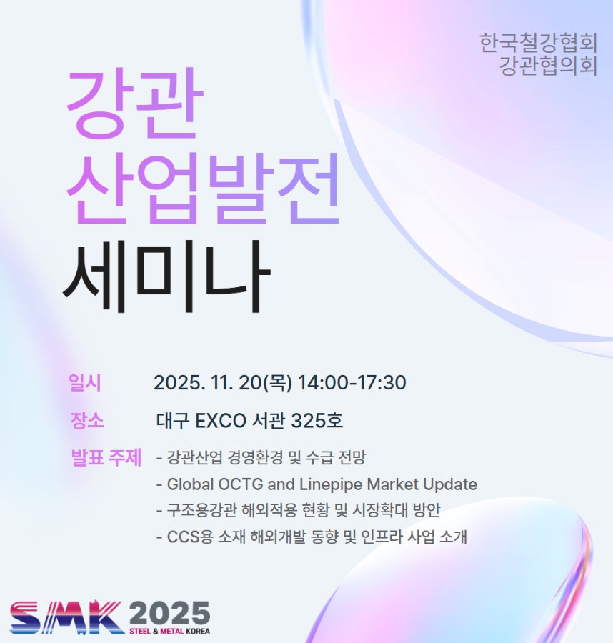 특히 최근 미국을 비롯한 주요국의 철강 관세 강화와 통상 압박이 심화되는 가운데, 국내 철강업계는 이번 전시회를 통해 대응 전략을 모색하고 산업 경쟁력을 강화할 수 있는 계기를 마련할 수 있다.