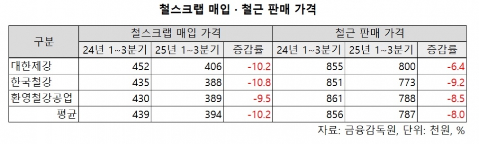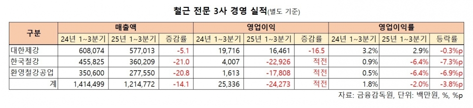반면 한국철강과 환영철강공업의 경우 올 1~3분기 20%대의 매출 급감과 함께 각각 229억원, 178억원의 대규모 영업손실을 기록했다.
