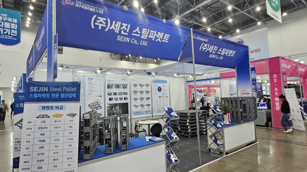 세진스틸파렛트(대표 이상협)이 대구 엑스코에서 진행되고 있는 2025 국제기계산업대전에 참가해 고강성 스틸파렛트 시스템을 선보였다.