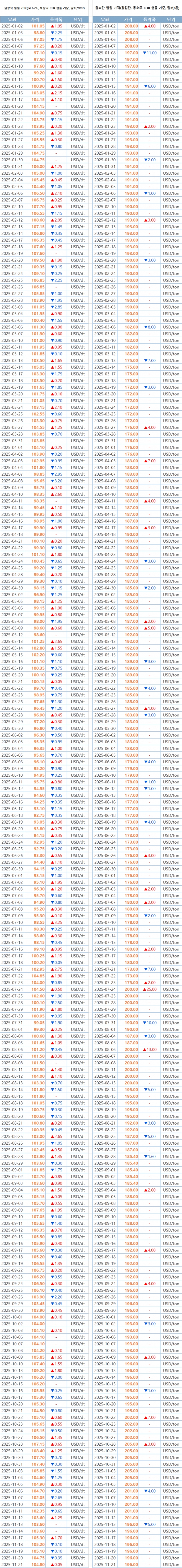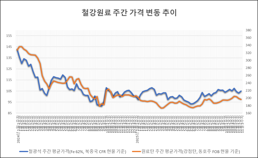 [표] 일일 철강 원료 가격 동향(11월 21일)