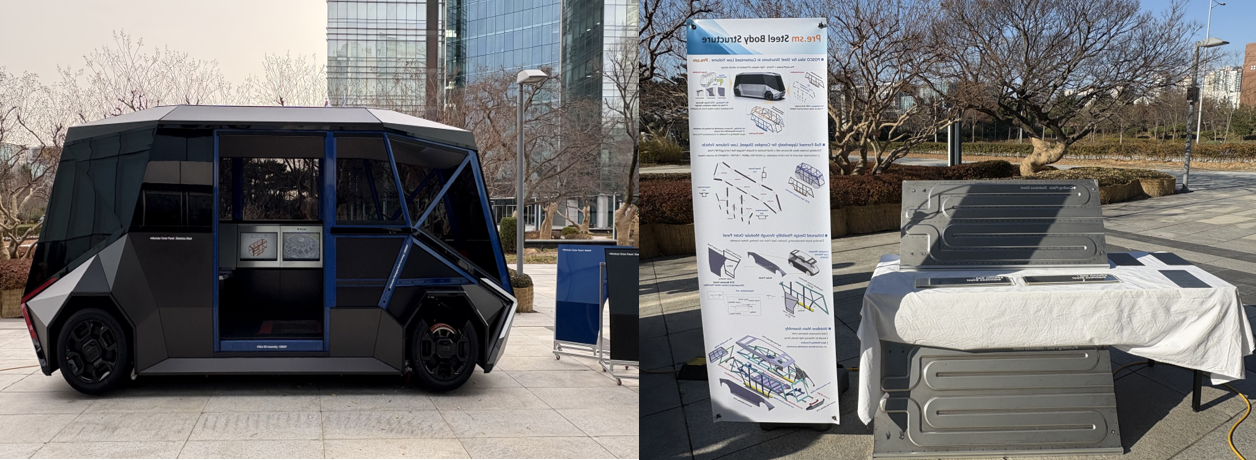 포스코가 3일 인천 송도 글로벌R&D센터에서 열린 ‘2025 포스코 자동차 솔루션 세미나’에서 스탬핑·도장 라인 없이도 철강 차체를 만들 수 있는 ‘프리즘(Pre.sm,Preview+prism) 스틸 바디 구조’를 선보였다.