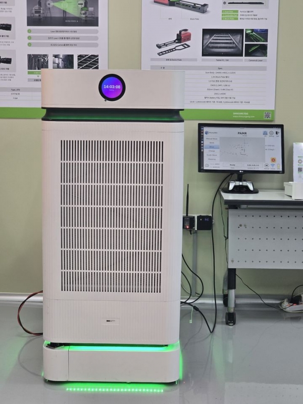 자율주행 기반 스마트 공기정화장치는 오염원 발생위치로 스스로 이동·정화하는 장치로 고정밀 무선 유해가스 측정센서와 디지털트윈 기술을 통해 공기질을 실시간 감지하고, 오염원을 추적해 공간 사각지대를 최소화 할 수 있다. 유기화합물(VOCs)·유해가스·미세먼지 등 6종 이상 유해물질을 제거하는 복합필터와 재생시스템을 적용해 운영효율도 높였다.