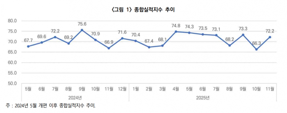 앞서 10월 CBSI(66.3)는 전월 대비 7.0p 급락하면서 지난해 5월 지수 개편 이래 최저치를 기록했으나, 지난달 다시 오르며 70선을 회복했다.