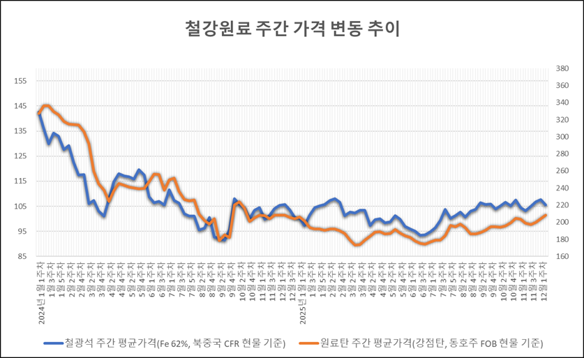 [표] 일일 철강 원료 가격 동향(12월 12일)