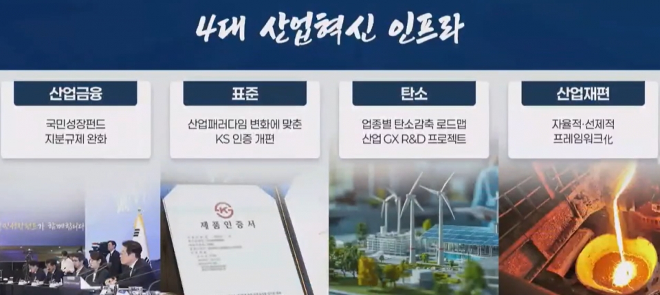 한편, 산업통상부는 이 날 대통령 업무보고에서 2025년 평가 항목으로 ‘철강 및 석유화학 산업의 자율적 산업 재편 착수로 재도약의 발판을 마련’했다고 서술했다. 내년 부처 중점 사업에선 ‘조선’ 부문에서 철강-조선 상생협의회를 1분기 내에 개최하여 상생방안을 마련하겠다는 내용을 담았다. 또한 2035 국가온실가스 감축목표(NDC) 달성을 위해 주요 업종별 ‘탄소감축 이행로드맵’을 수립하고 60년 만에 KS 인증체계를 전면 개편, 경미한 변경 등을 우회덤핑차단, 덤핑피해 적기 구제(신속한 조사 개시, 잠정관세 적극 조치 등) 등의 내용을 발표했다. 그 밖에 ‘철강’ 산업 부문에 대한 별도 상세 언급은 없었다.