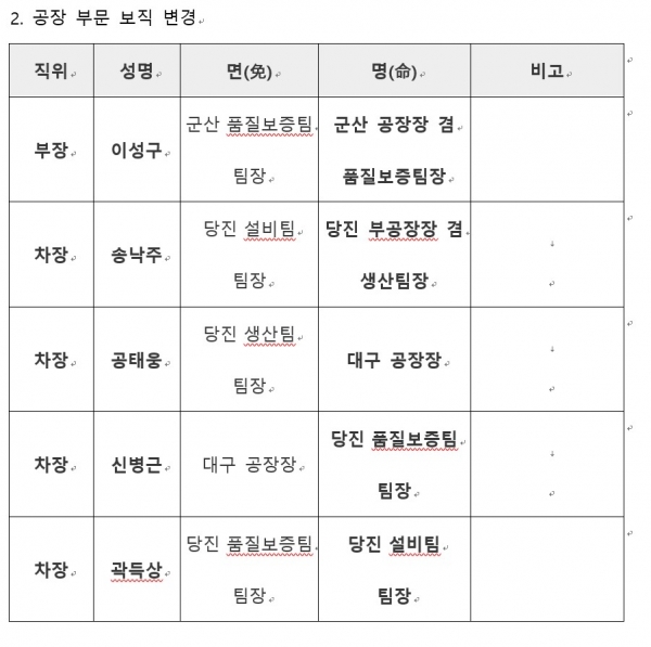 강관 제조업체 휴스틸(대표 박훈)이 2026년 임원 승진 인사 및 공장 부문 보직 변경을 단행했다. 내용은 다음과 같다. 박재철 기자 parkjc@snmnews.com 다른 기사 보기 관련기사 유정용강관, 美 고관세에 수출 물량 '뚝' 국토부 모듈러 건축 특별법 제정 추진에 강관사 '맑음' 배관용강관, 제품 생산부터 소재 매입 최소화 中, 내년 1월부터 철강 수출 허가제 시행 전남도 전국 최대 스마트팜 구축에 농원용강관 수요↑ 저작권자 © 철강금속신문 무단전재 및 재배포 금지