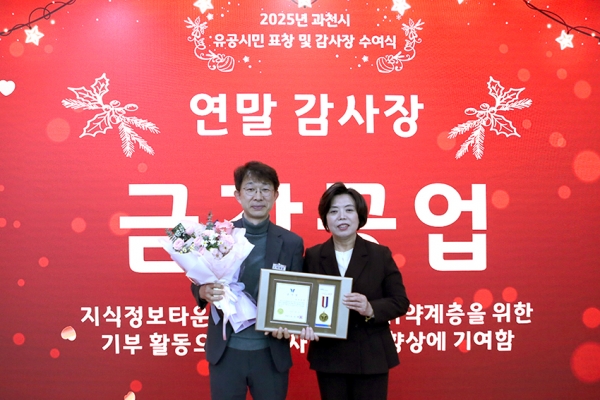 한편, 이날 수여식에서는 금강공업을 비롯해 ㈜태진티앤에스, ㈜다인산업개발 등 지역 기업과 과천도시공사, 과천의용소방대 등 기관·단체가 지역사회 발전과 시정 협력에 기여한 공로로 감사장을 받았다.