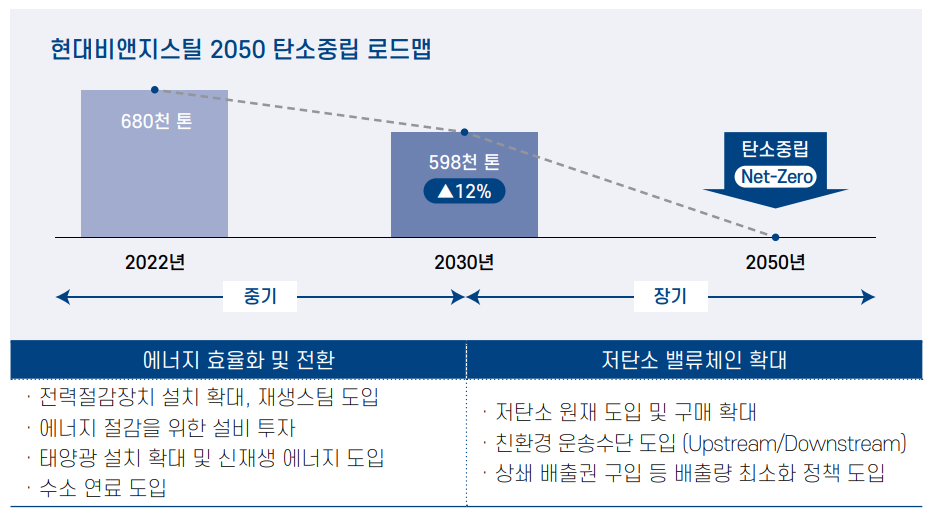 현대비앤지스틸의 ESG 계획 핵심 요약 내용
