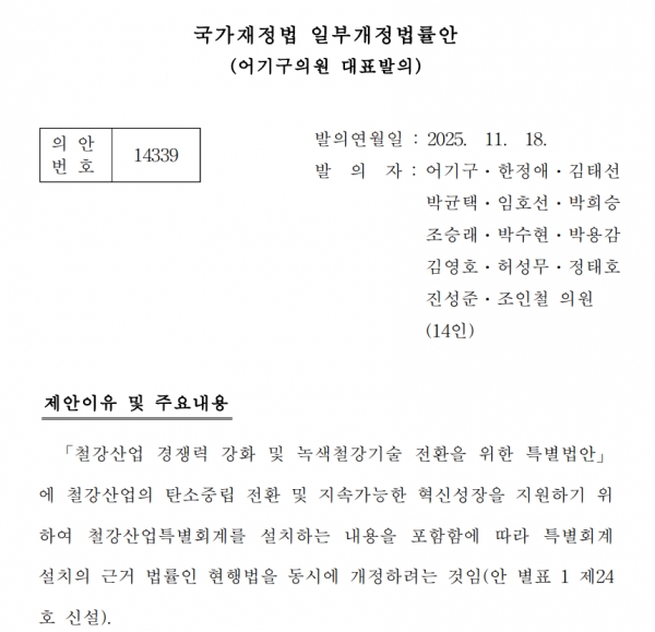 어기구 의원 :  「K-스틸법」은 대한민국 경제의 중추 산업인 철강산업이 무너져서는 안 된다는 절박함에서 출발했다. 이 법은 특정 지역이나 특정 정당의 법안이 아니라, 국가 산업과 경제를 지키기 위한 법이라고 생각한다.