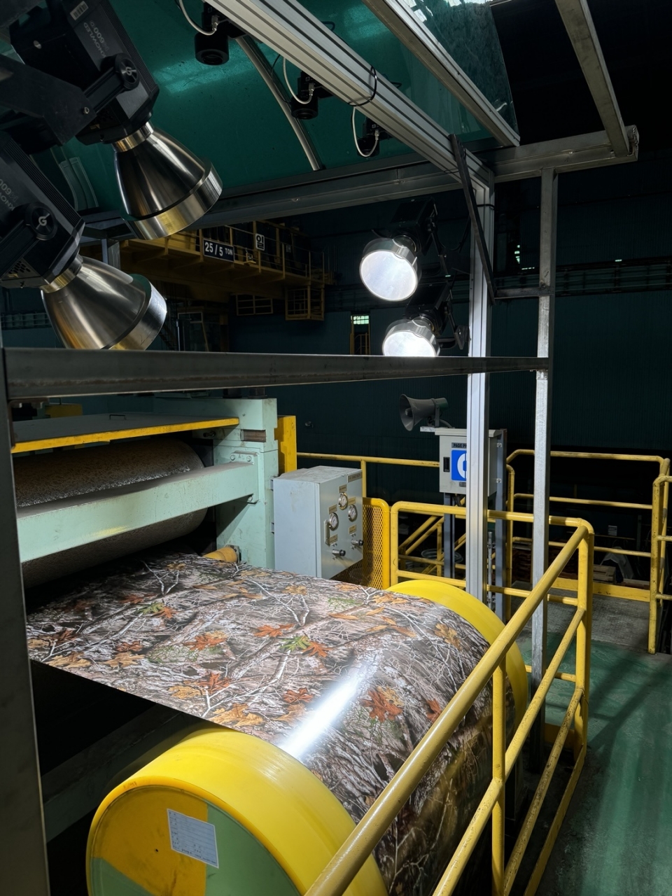 동국씨엠 부산공장 컬러강판 생산라인에 AI기반 표면 결함 검출 기술 ‘DK SDD’가 적용된 모습(사진=동국제강그룹)