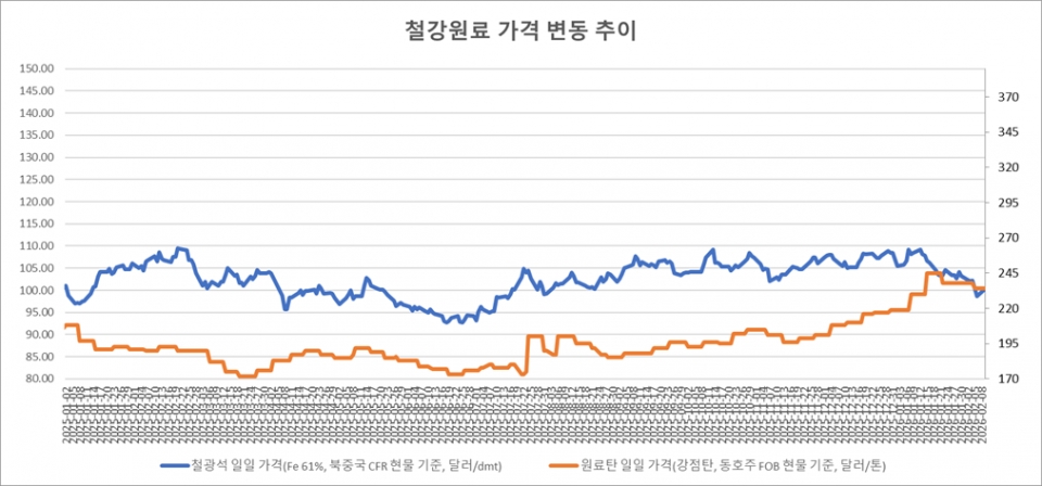 키워드 #철광석 #제철용 원료탄 이사무엘 기자 smlee@snmnews.com 다른 기사 보기 관련기사 中 67% 점유…1월 선박 수주, 한·중 격차 확대 2025년 1~11월 공작기계 수주 전년比 0.7% 감소 중기부, ‘2026년 탄소중립 설비투자 지원사업’ 일반·고도화 참여기업 모집 중소기업 “올 설 자금 평균 2,630만원 부족” 연말 효과 소멸…건설사 체감경기 새해 들자 '뚝' [오늘 중국은] 징예강철, S7-1500 PLC 기반 광폭 열연 제어 전면 적용 2월 日 관동 전기로 조강 전월比 두 자릿수 증가 전망 잘츠기터, 오는 6월부터 HKM 제철소 단독 운영 가닥 KG스틸, 재무개선 성과 공개…350억 설비 합리화 투자 “미국 반도체 공장 첫 발”…덕신EPC, 애리조나서 스피드데크 수주 삼성중공업, 컨테이너선 2척 4,686억 수주 포스코1%나눔재단·국가보훈부, 국가유공자 첨단보조기기 지원 협력 [이슈]中 자본 인도네시아 철강 ‘500만톤 증설’…인니산 저가 물량 확대 ‘우려’ 저작권자 © 철강금속신문 무단전재 및 재배포 금지
