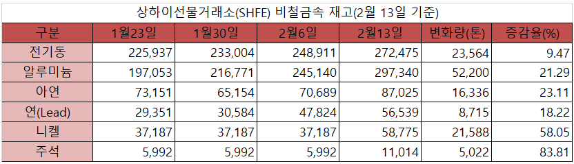 김영은 기자 yekim@snmnews.com 다른 기사 보기 관련기사 [표] 상하이선물거래소 재고(2월 27일) [표] 상하이선물거래소 재고(3월 6일) 저작권자 © 철강금속신문 무단전재 및 재배포 금지
