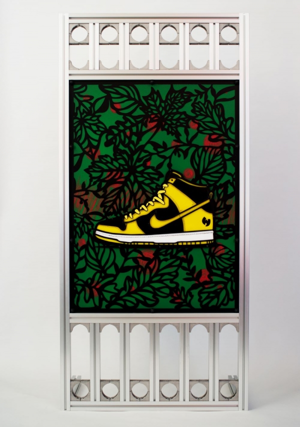 KOJE, GOT'EM_HJ4320-001, 57x120x7cm, stained glass,oil pastel,acrylic on steel, copper screw, AL profile, 2024=사진제공 충무로 갤러리