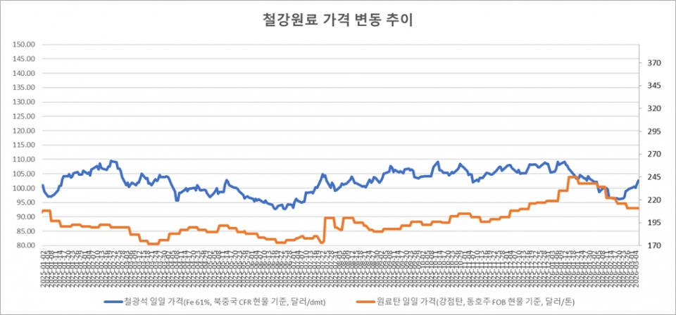 키워드 #철광석 #제철용 원료탄 이사무엘 기자 smlee@snmnews.com 다른 기사 보기 관련기사 日 공영제강, 중동 리스크 확산에 당분간 제품 계약 중단 [연재] 산업현장 안전에 미래 달렸다 – 주형 건조작업 중 용기 폭발 중기부, 중동 상황 관련 ‘긴급 물류바우처’ 신설 및 정책자금 ‘특별만기연장’ 추진 두산에너빌리티, 미국 기업과 가스터빈 7기 공급계약 체결 “인공지능으로 생산성·효율성 모두 잡아”…광양제철소, 생성형 AI 경진대회 개최 올해 중국산 H형강 자취 감춰…일본산 점유율 80% 육박 국내 철스크랩 수입 30% 급감세…수출은 전년 수준 유지 [오늘 중국은] 월말로 갈수록 생산 증가한 2월 [주간원료동향] ‘美-이란 분쟁 속 양회 정책 기대감’ 철광석價 2주 연속 상승 포항제철소 ‘비전 토크’ 개최…박남식 소장 “하나의 팀으로 미래 준비” 포항제철소, 데이터·AI 기반 ‘예지정비’ 구축…인텔리전트 팩토리 고도화 中 열연강판價 3,200위안대 유지…성수기 수요 회복 여부 주목 KG스틸, 자회사 KG스틸에스앤디 흡수합병 결정 후판 판매 2월 감소…수출 물량 줄어 케이알스틸, 부산 사상구에 백미 기탁 포항 철강 전후방 기업 금융 숨통…이차보전 지원사업 가동 저작권자 © 철강금속신문 무단전재 및 재배포 금지