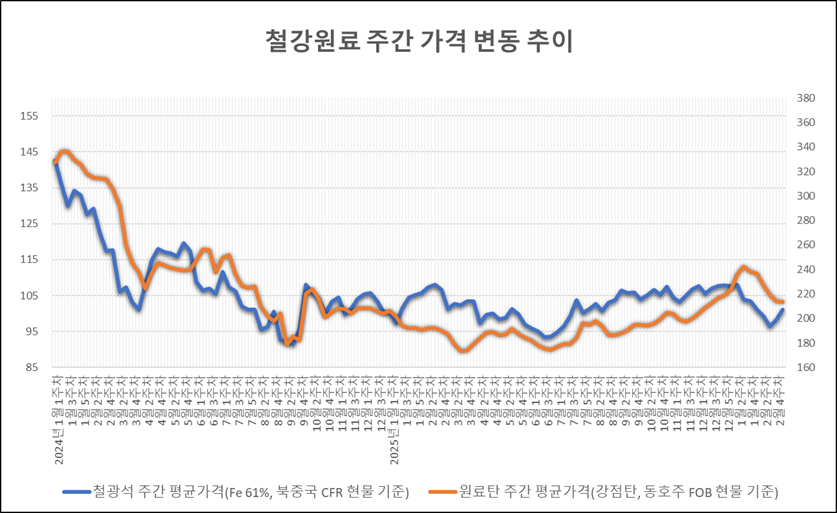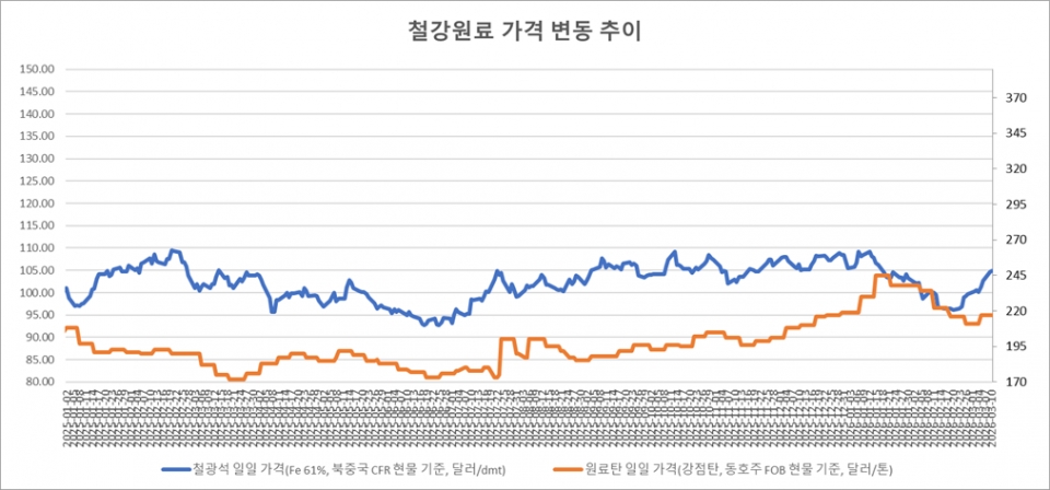 [표] 일일 철강 원료 가격 동향(3월 10일)