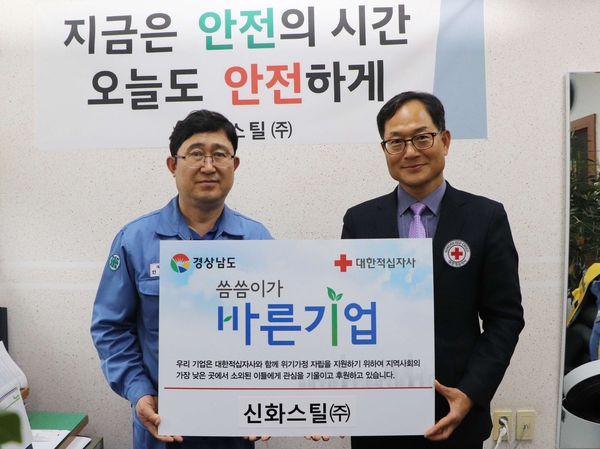 신화스틸은 창원시 성산구에 소재한 철강 제조 기업이다. 해당 기업은 2026년 1월부터 ‘씀씀이가 바른기업’ 캠페인 가입을 통해 위기가정 지원을 위한 나눔 실천에 동참하고 있다.