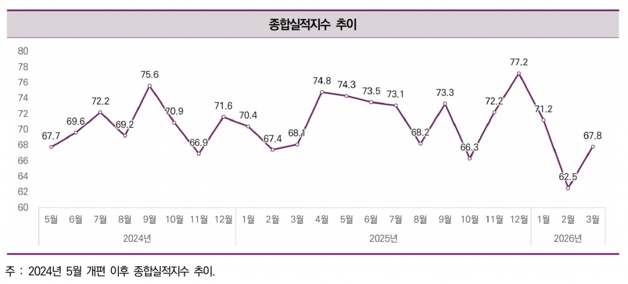 앞서 CBSI는 연말 수주 증가에 지난해 12월(77.2)까지 급등했으나, 이후 다시 급락하며 올 2월(62.5) 실적은 지수 개편 이래 최저치를 기록한 바 있다.