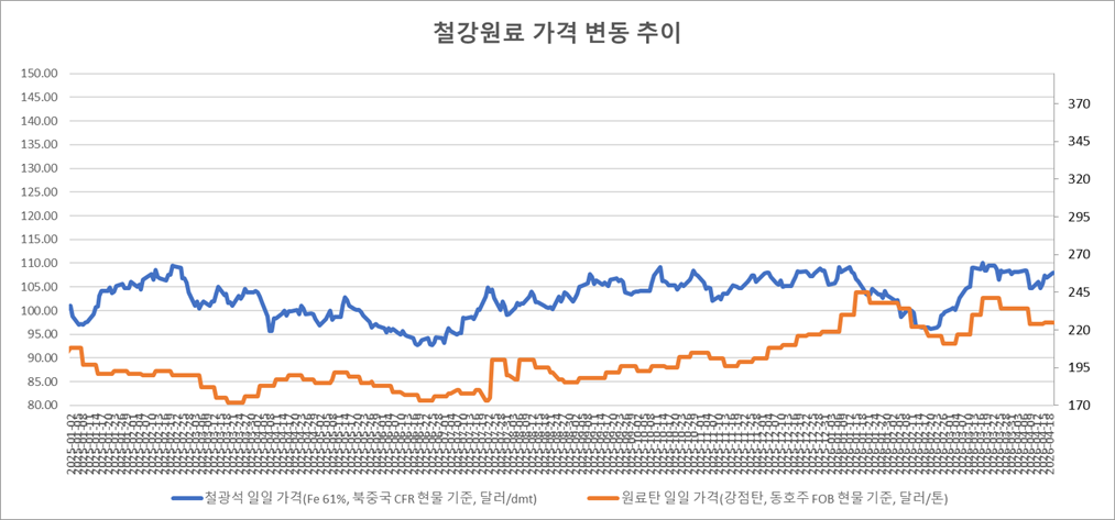키워드 #철광석 #제철용 원료탄 이사무엘 기자 smlee@snmnews.com 다른 기사 보기 관련기사 [STS] 각종 가격 지표 강세지만 수요 부진에 한 숨 일본제철, 야하타 제철소에 200만톤 전기로 착공 수요 부진에도 1분기 선재 수입 25.9% ‘급증’ 현대로템, 신용등급 ‘AA’로 퀀텀 점프 (특수강봉강) 수입 감소·제품價 인상에도 ‘불안감 지속’ (선재) 수입 급증에도 원가 상승에 제품價 인상 포스코, 인도서 다시 승부…JSW와 일관제철소 건설 착수 (강관) 구조관, 4월 추가 제품價 인상 빨라지나 [후판] 공급 부담 속 가격 유지력 눈길 [열연강판] 빡빡한 공급 속 강세 유지 교실 밖으로 나온 공학… 포스코 대학생봉사단 비욘드 19기 단원 모집 철강 수출기업 금융 지원 확대…이차보전 사업 개시 BDI 급등에 철강 원가 압박 확대…해상운임 변수 재부각 저작권자 © 철강금속신문 무단전재 및 재배포 금지