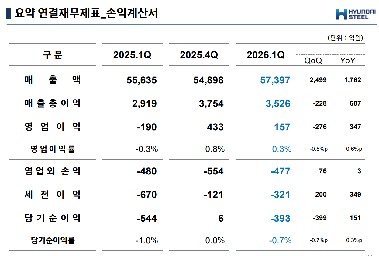24일, 현대제철이 2026년 1분기 실적 컨퍼런스콜(IR)을 개최했다.