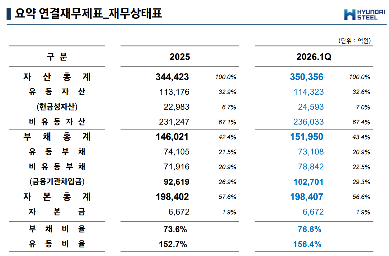 자본 총계는 19조 8,407억 원으로 전년 말과 유사한 수준을 유지하며 견고한 재무 구조를 뒷받침했다. 현대제철은 향후에도 안정적인 재무 지표를 바탕으로 수익성 중심의 경영을 이어갈 방침이다.