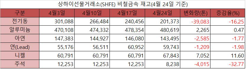 김영은 기자 yekim@snmnews.com 다른 기사 보기 관련기사 [표] 상하이선물거래소 재고(4월 17일) [표] 상하이선물거래소 재고(4월 10일) 저작권자 © 철강금속신문 무단전재 및 재배포 금지